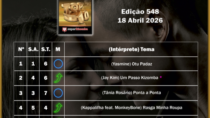 TOP 1O KIZOMBA, EDIÇÃO 548, 18 DE ABRIL DE 2026